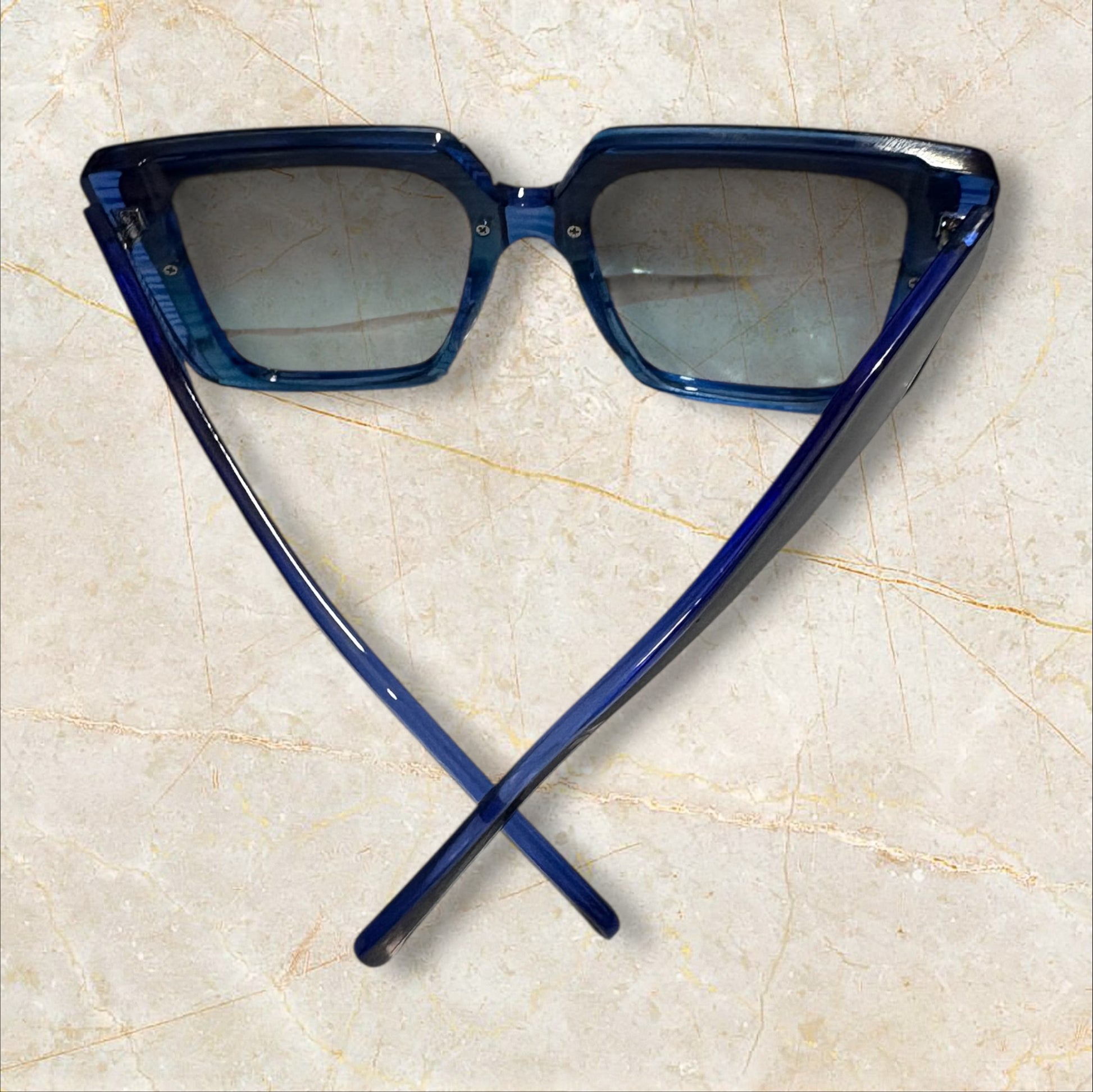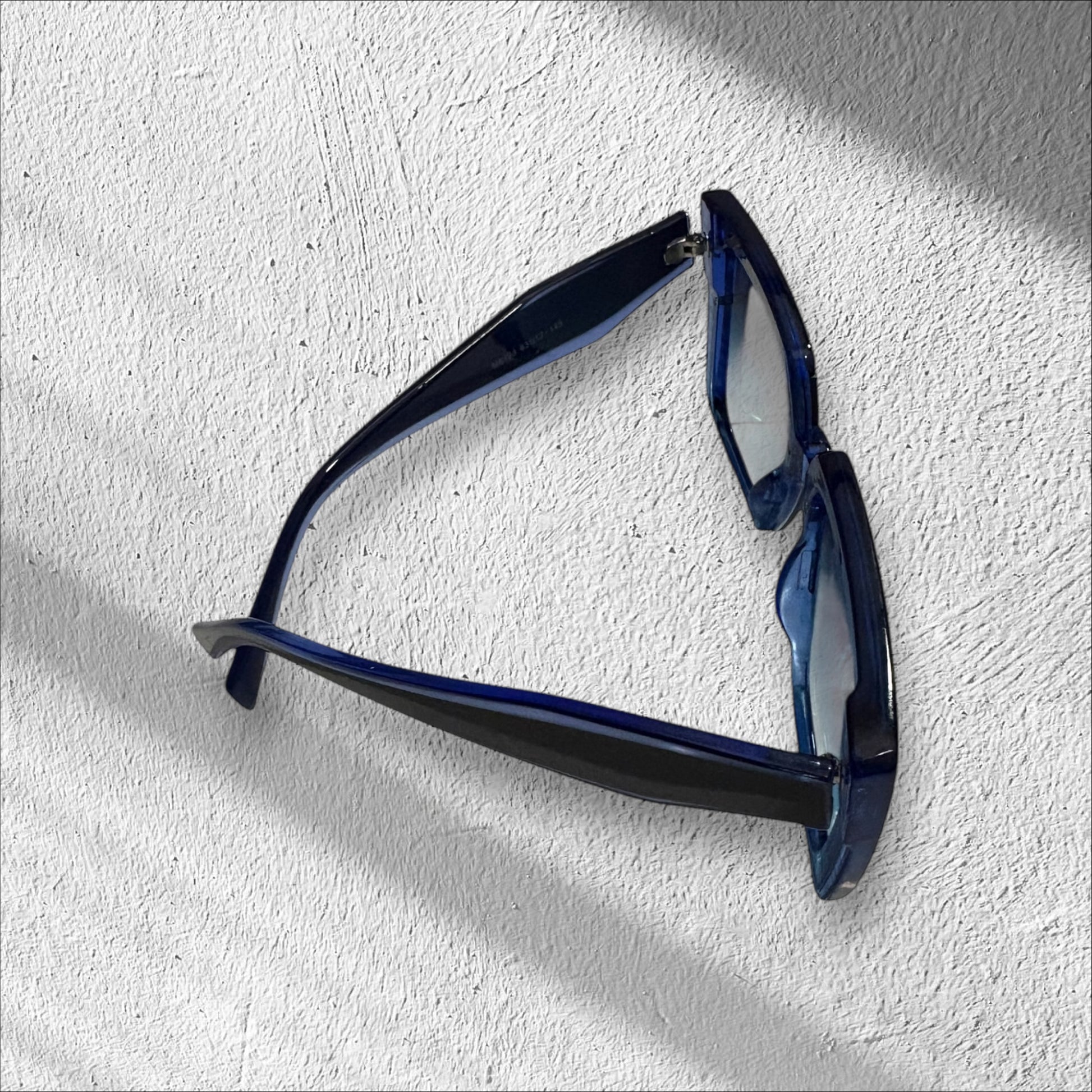 These stylish sunglasses feature a bold, oversized blue frame. The angular design adds a contemporary touch, making them a perfect accessory for any outfit, whether it's casual or chic. Ideal for sun-soaked days or making a statement.