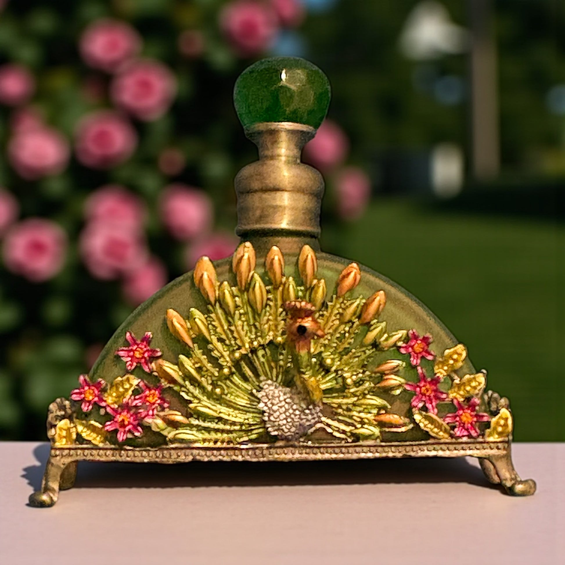 Elevate your fragrance display with this elegant Pink and Green Perfume Bottle. Its delicate blend of soft blush and verdant hues creates a refined aesthetic, perfect for adding a touch of sophistication to any vanity. This 3 x 2 inch vintage bottle is an exquisite choice for storing your favorite scent or as a stylish decorative accent.